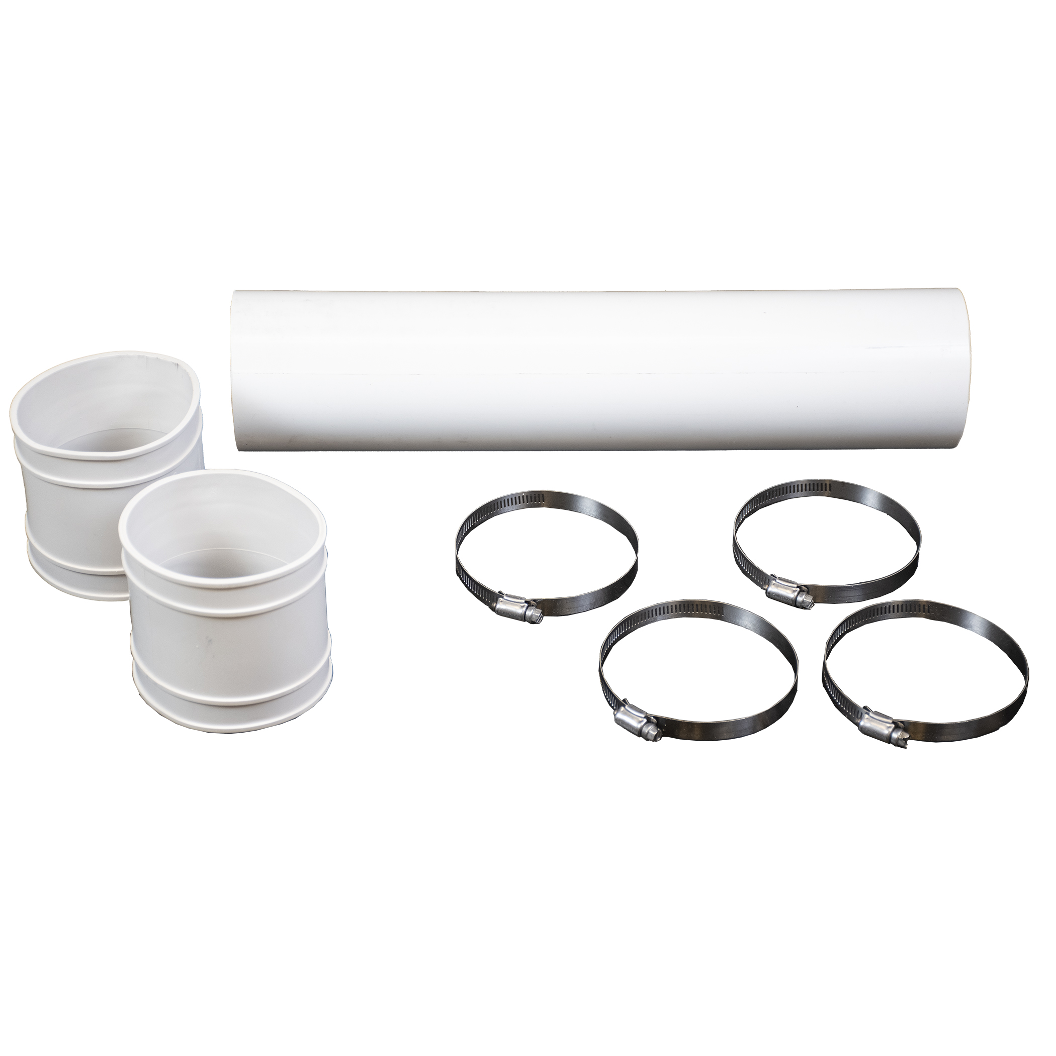 Our Qwik Jon Toilet Extension kit allows you to install a Qwik Jon system in an adjacent room. The Extension Kit allows you to pipe the discharge line of our Model 202 rear outlet toilet through a wall into an adjacent utility room.